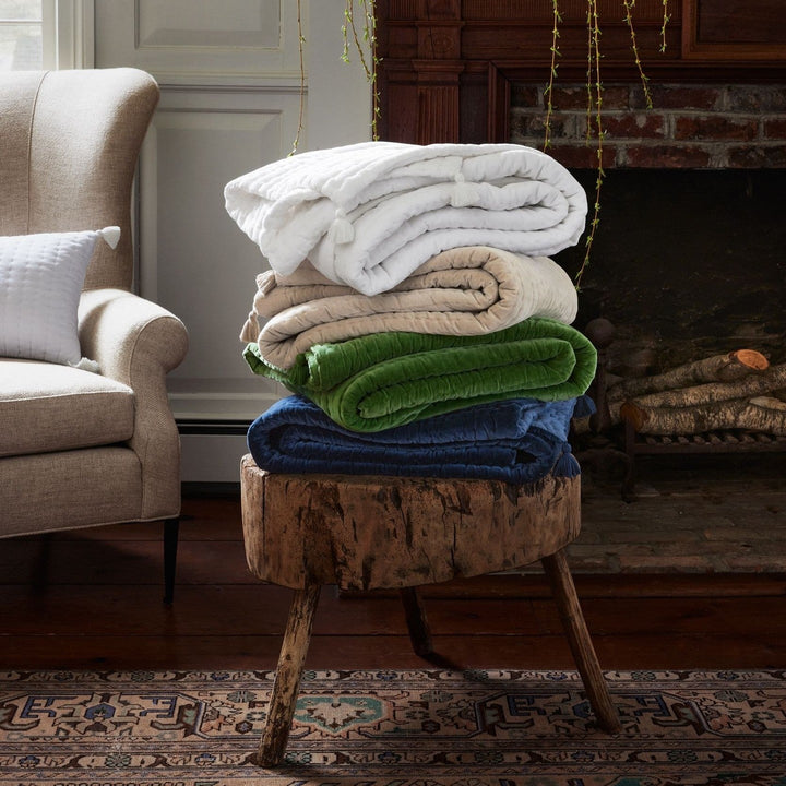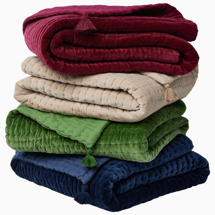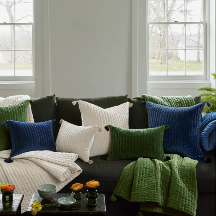 - Associez-les à des coussins décoratifs en velours matelassé à la main assortis pour un look coordonné.