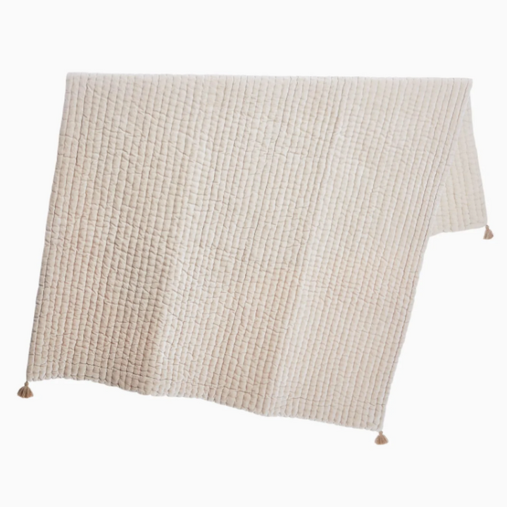 Douillet, confortable et élégant, ce Plaid velours est une pièce de choix qui allie confort et savoir-faire artisanal. Le motif matelassé à la main et les pompons délicats rehaussent son charme et en font une belle addition à toute maison.
