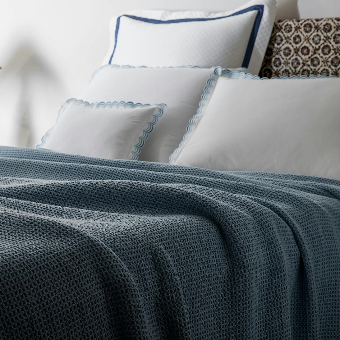 - Associez la housse de couette India Scalloped à la housse de couette Nico Organic Literie pour créer un ensemble de literie apaisant et élégant.