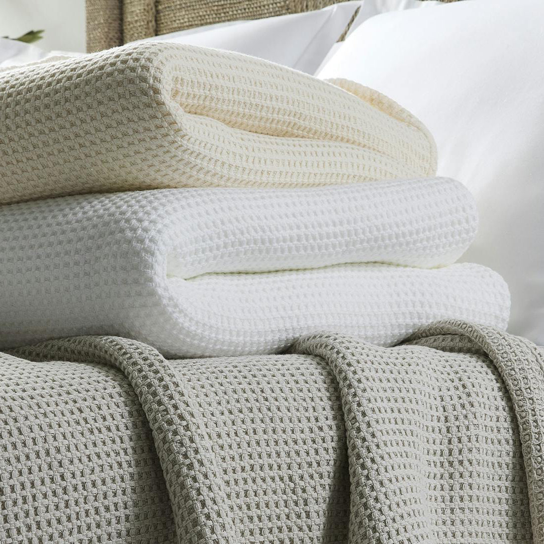 Cette couverture offre un confort luxueux et un design intemporel. Le tissage gaufré du coton ajoute de la texture et de la profondeur, ce qui en fait un complément élégant et essentiel à tout lit.