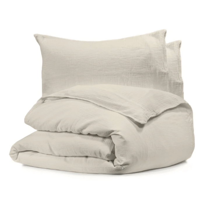 Idéale pour l'été, la housse de couette Emilia en gaze de coton se distingue par son incroyable légèreté, sa finesse et sa douceur. Particulièrement adaptée aux couettes en duvet, son caractère aéré laisse le duvet gonflé et confortable.