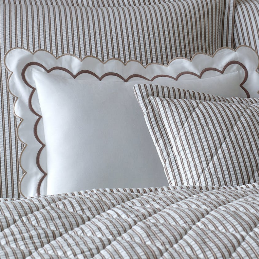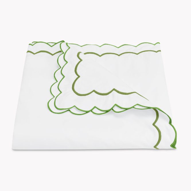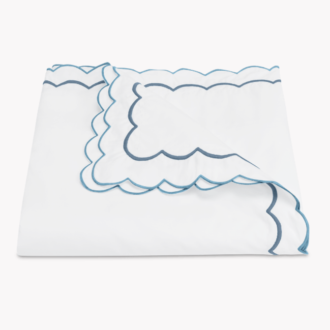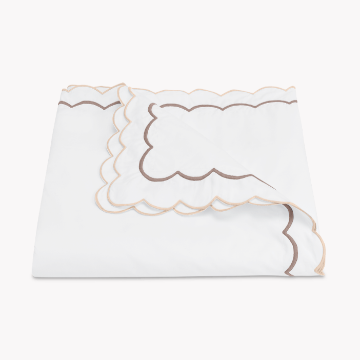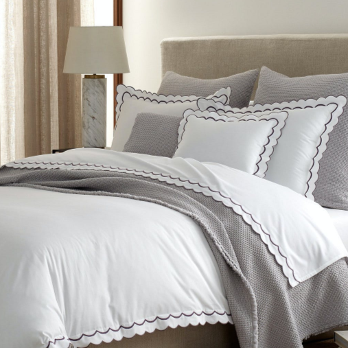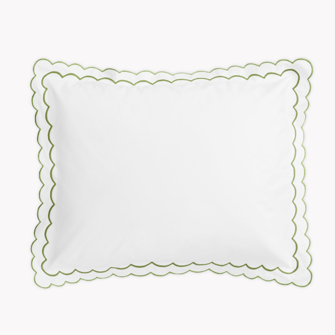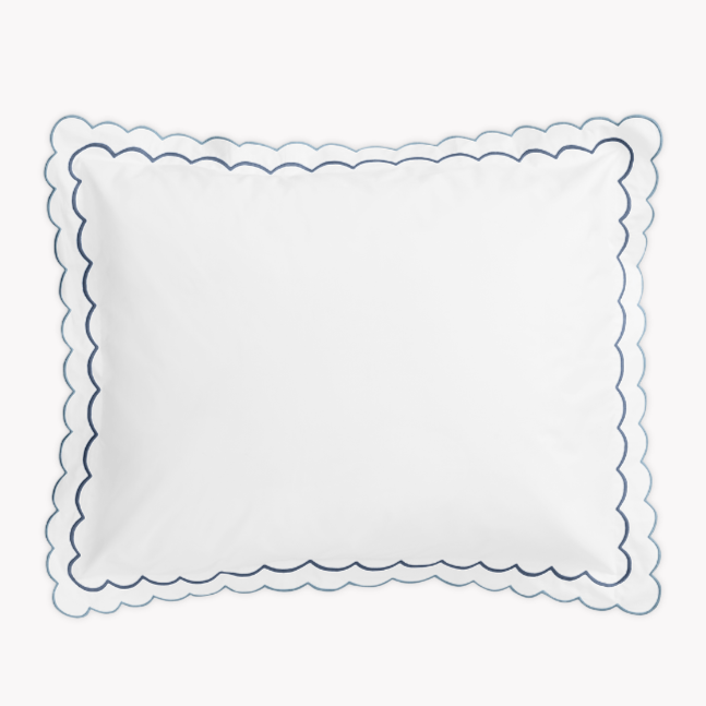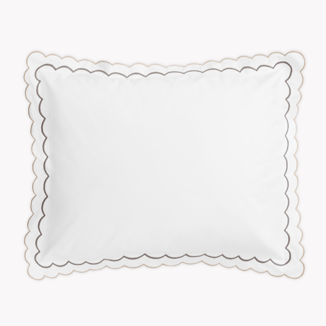 Une version raffinée de la broderie, avec un rebord festonné délicat et deux lignes de couture parallèles pour une touche de sophistication ludique.