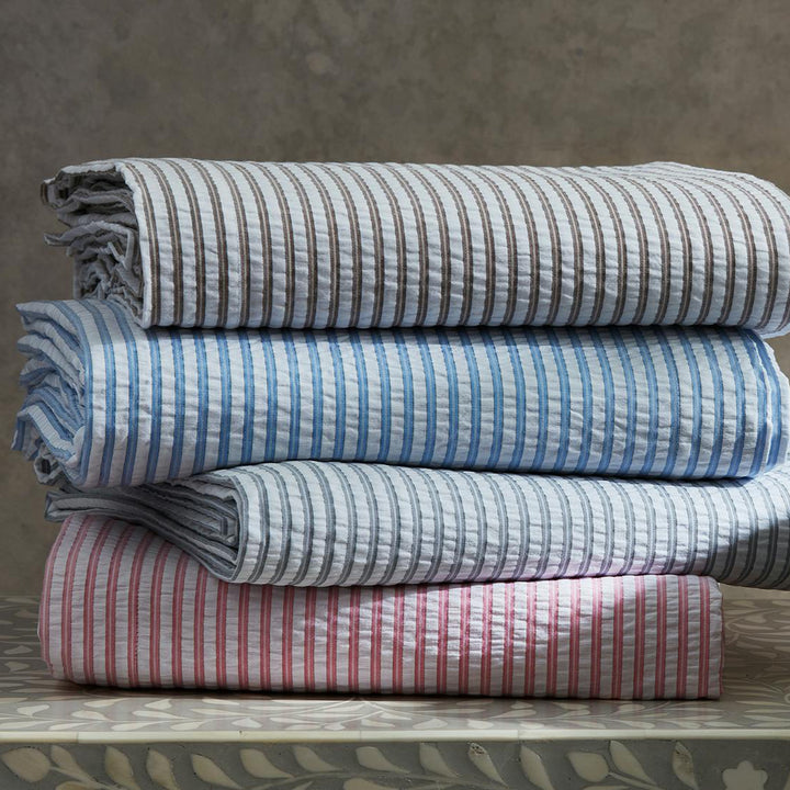 - Tissage/Texture : Seersucker frais avec une rayure bicolore raffinée
