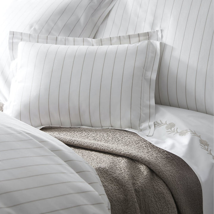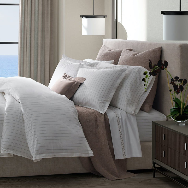 Elevate your bedroom with the timeless beauty of the Amalfi collection. Featuring a handsome pinstripe design, this bedding is crafted from long-staple cotton percale, providing a refined, durable quality. With a special finish that delivers a remarkably soft hand-feel, Amalfi is perfect for effortless mix-and-match styling, making it a classic choice for any bedroom.