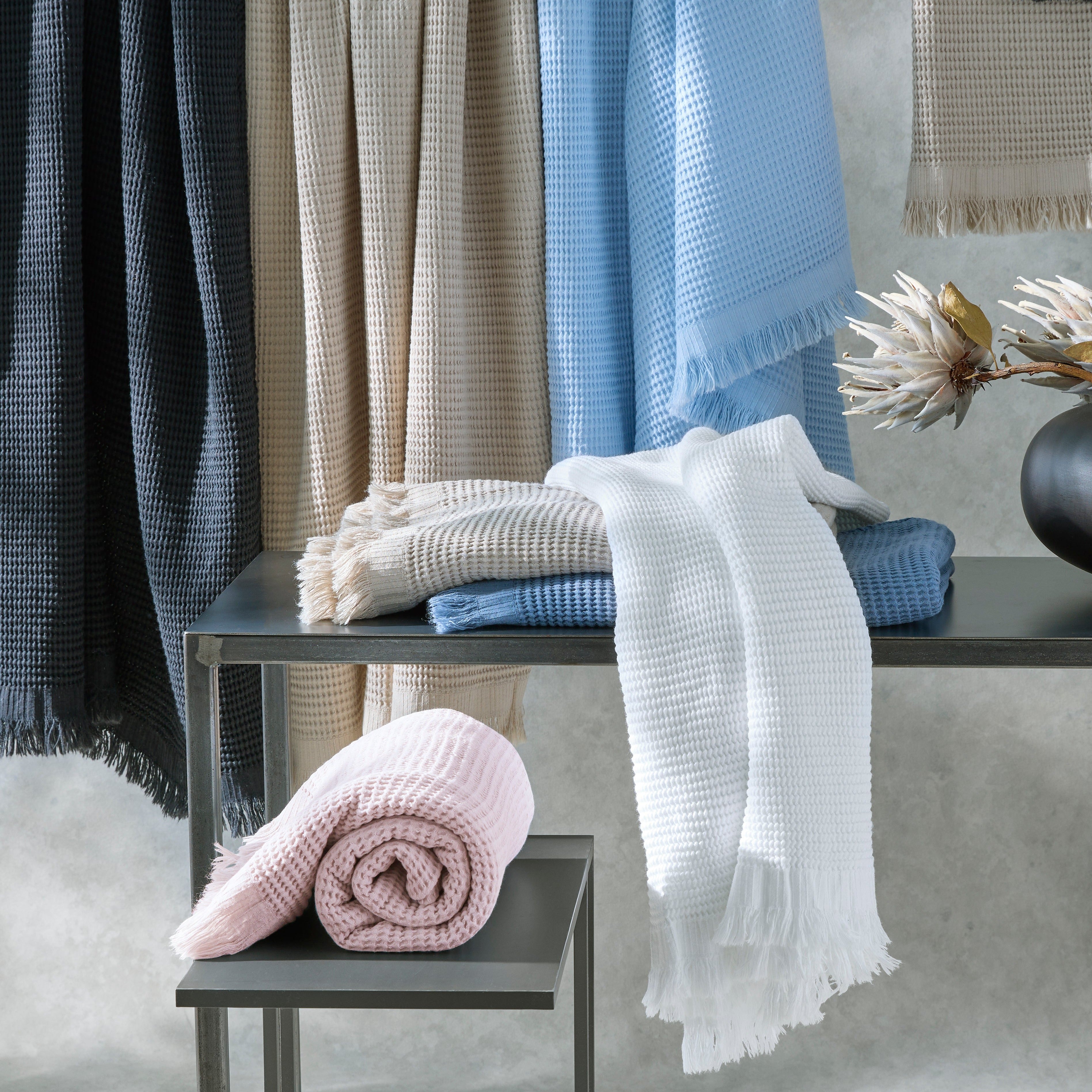 Indulge in the exquisite softness of Kiran, a beautifully woven waffle towel designed for luxurious comfort. Crafted from a premium blend of cotton and bamboo, its supple texture offers superior absorbency, while a delicate barred border with fringe adds an elegant finishing touch.