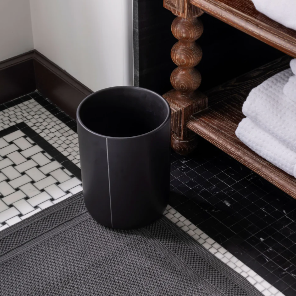 Crafted from stoneware and detailed with a hand-painted line, the Nero Bath Accessories bring modern sophistication to your bathroom. These elegant pieces blend seamlessly into contemporary spaces, offering both style and function.