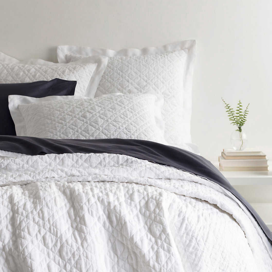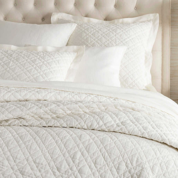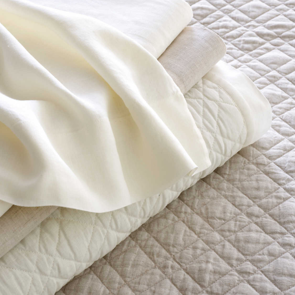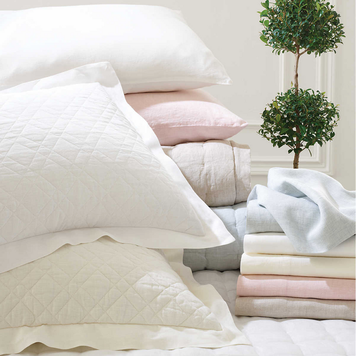 Capture linen's timeless appeal with this casually elegant take on the classic quilt. Featuring lush linen on the front, a thin layer of batting in between, and silky cotton percale on the back, this quilt blends softness, breathability, and comfort. Traditional diamond quilting adds texture and durability, while stonewashing ensures a relaxed, lived-in feel.